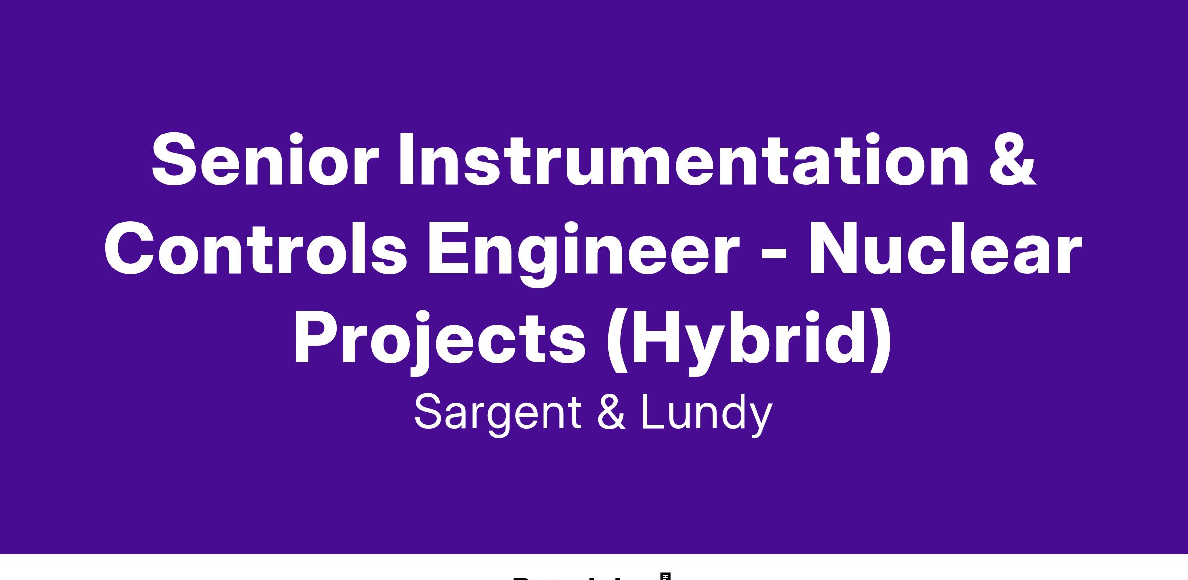 Join Sargent & Lundy's Nuclear Power Group and be part of a team driving the future of clean, carbon-free energy. Since 1954, weβve been a trusted leader in nuclear engineering, design, and licensing, with expertise spanning small modular reactors (SMRs), advanced reactor technology (ART), and first-of-a-kind commercial reactor restart projects. Our work supports life extensions and digital modernization of existing nuclear plants, coal-to-nuclear conversion initiatives with the Department of State, and international nuclear new-build projects. With a commitment to safety, innovation, and sustainability, we provide cutting-edge solutions that power communities worldwide while reducing emissions. Shape the future of global energy with us!