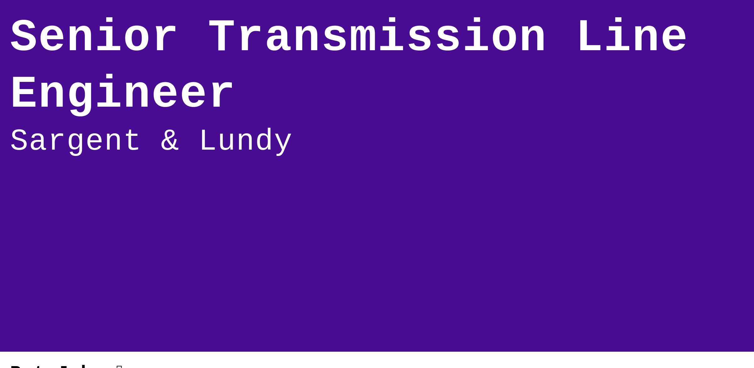 Sargent & Lundy is an equal opportunity employer. All qualified applicants will receive consideration for employment without regard to race, color, religion, sex, sexual orientation, national origin, disability status, protected veteran status, or any protected status as defined by applicable law.